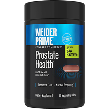 Weider Prime Santé de la prostate pour hommes, à base de palmier nain, double action avec stimulation de l’oxyde nitrique, favorise un flux urinaire normal et régulier, 60 gélules végétales .